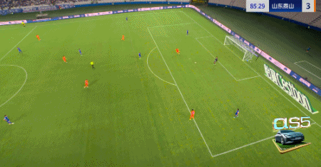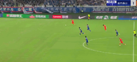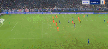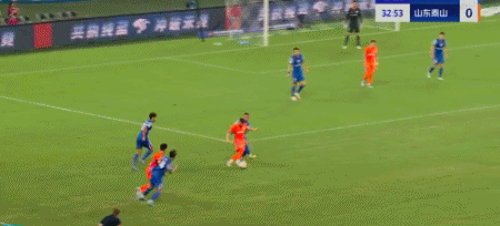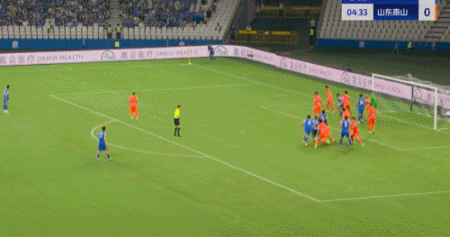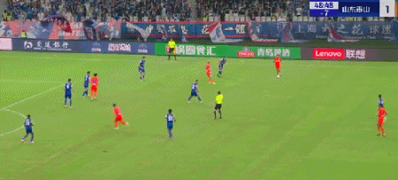 第45+4分钟,7场13球!卡扎轻巧停球后推射破门!山东再度扳平!